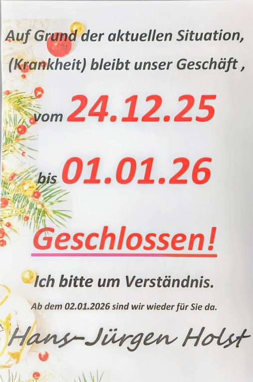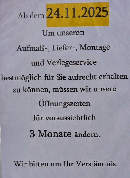 Unser Geschäft hat zu den regulären Öffnungszeiten für Sie geöffnet.